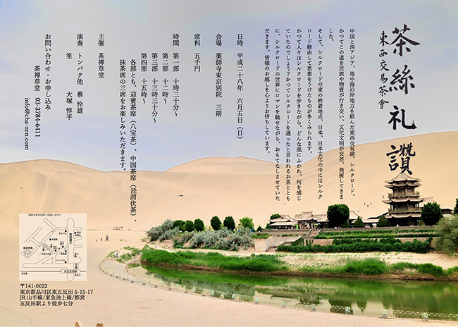 東京国立博物館 応挙館にて開催され好評を博したコラボレーションの再演となる今回は、実際に中国茶の茶芸と茶の味を、日本古来の横笛“篠笛”の奏楽と共にお楽しみ頂けます。